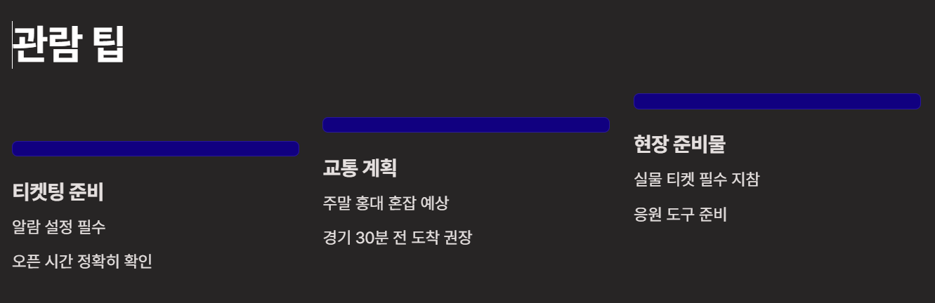 경기 일정, 티켓 오픈, 교통편까지 모두 체크해서 완벽한 직관을 준비하세요!